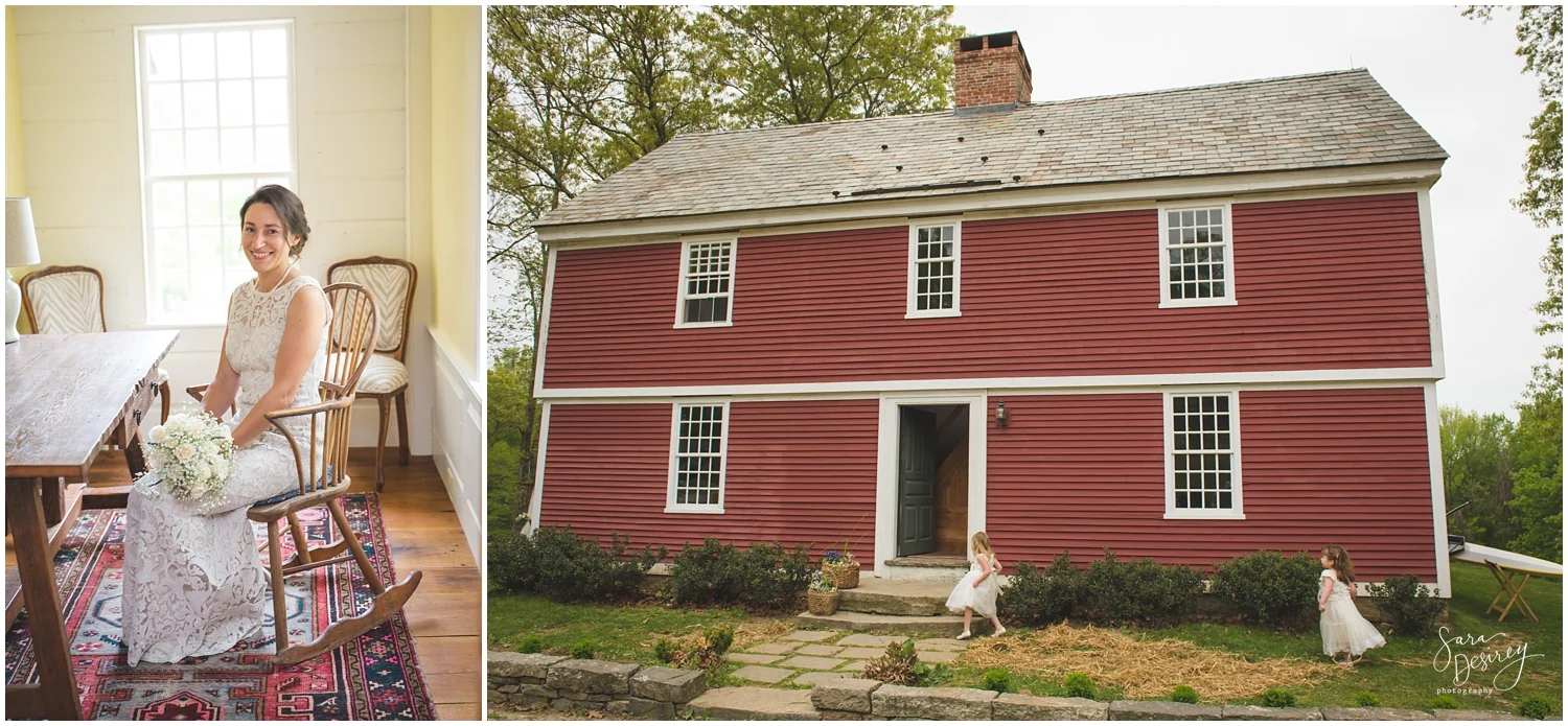 Seana and Tyler's wedding day was much different than the average wedding I capture. For one, the entire ceremony and reception took place on a farm - I'm talking horses in their own paddock, chickens, baby chicks, and a free-range goose, just to name a few characters! What I wasn't expecting but was ultimately so excited to capture (besides Seana and Tyler!) was the absolutely gorgeous farmhouse where the wedding took place. Seana's parents had been gifted the house in Madison, CT twenty-two years before, and had it disassembled and put back together on their property in Lyme. The three hundred year old house was filled with rustic charm, and Seana wanted me to capture as much of the it as possible, which I was only too happy to do.
